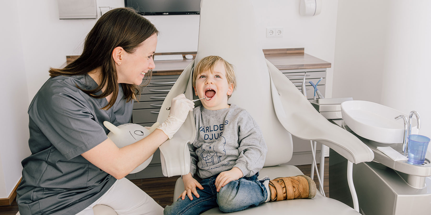 - Positiv ankündigen: „Wir schauen, wie deine Zähne wachsen“ klingt besser als „Da wird gebohrt“.